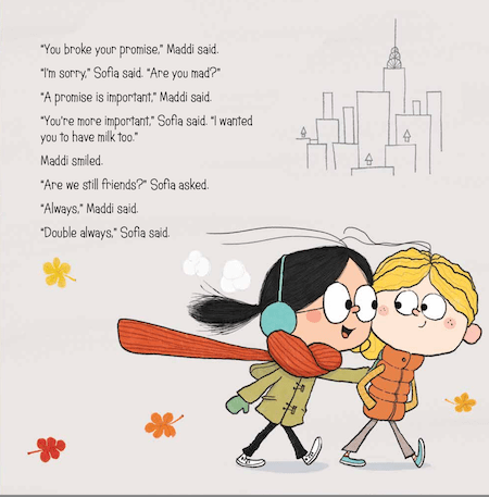 The last thing that I like is the secondary theme of friendship. Sofia and Maddi are good friends. They play together. Lots. When Sofia learns that Maddi doesn’t have food in her home, Sofia is worried for Maddi. That’s what friends do. Worry — when worry is appropriate.
