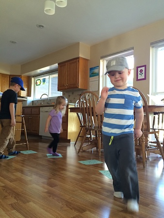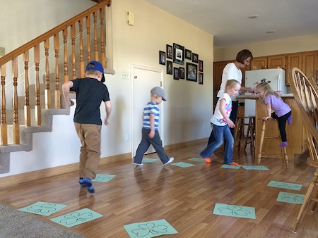 Let me share some lessons learned from this activity. First, it might be nice to tape the shamrocks to the floor. Exuberant grandchildren can make them go sliding all over the place.