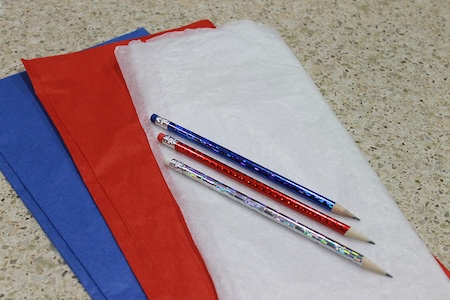 (P.S. Dear Reader, if you don’t live in the U.S., use tissue paper and pencils the colors that are found in your country’s flag.)